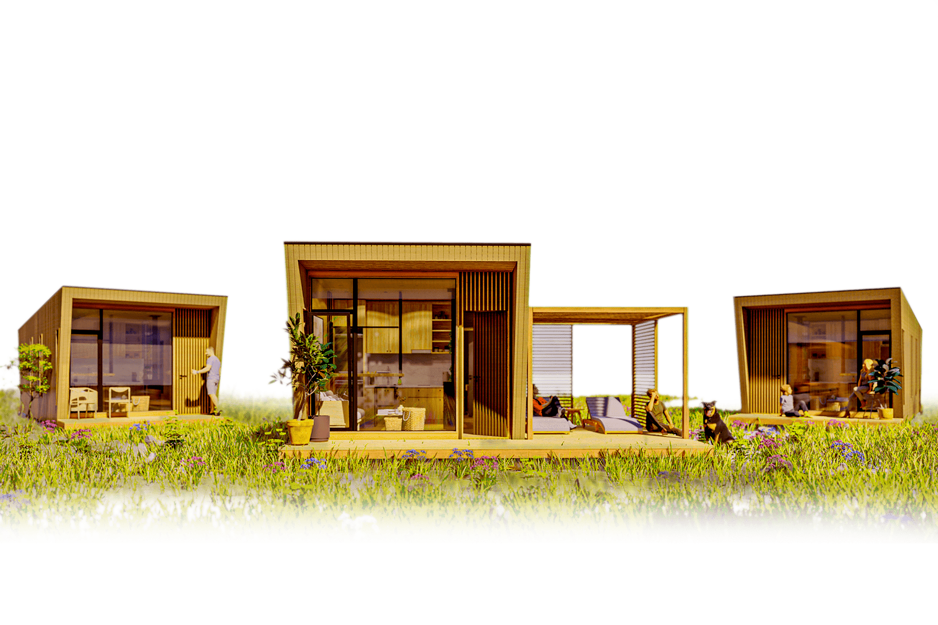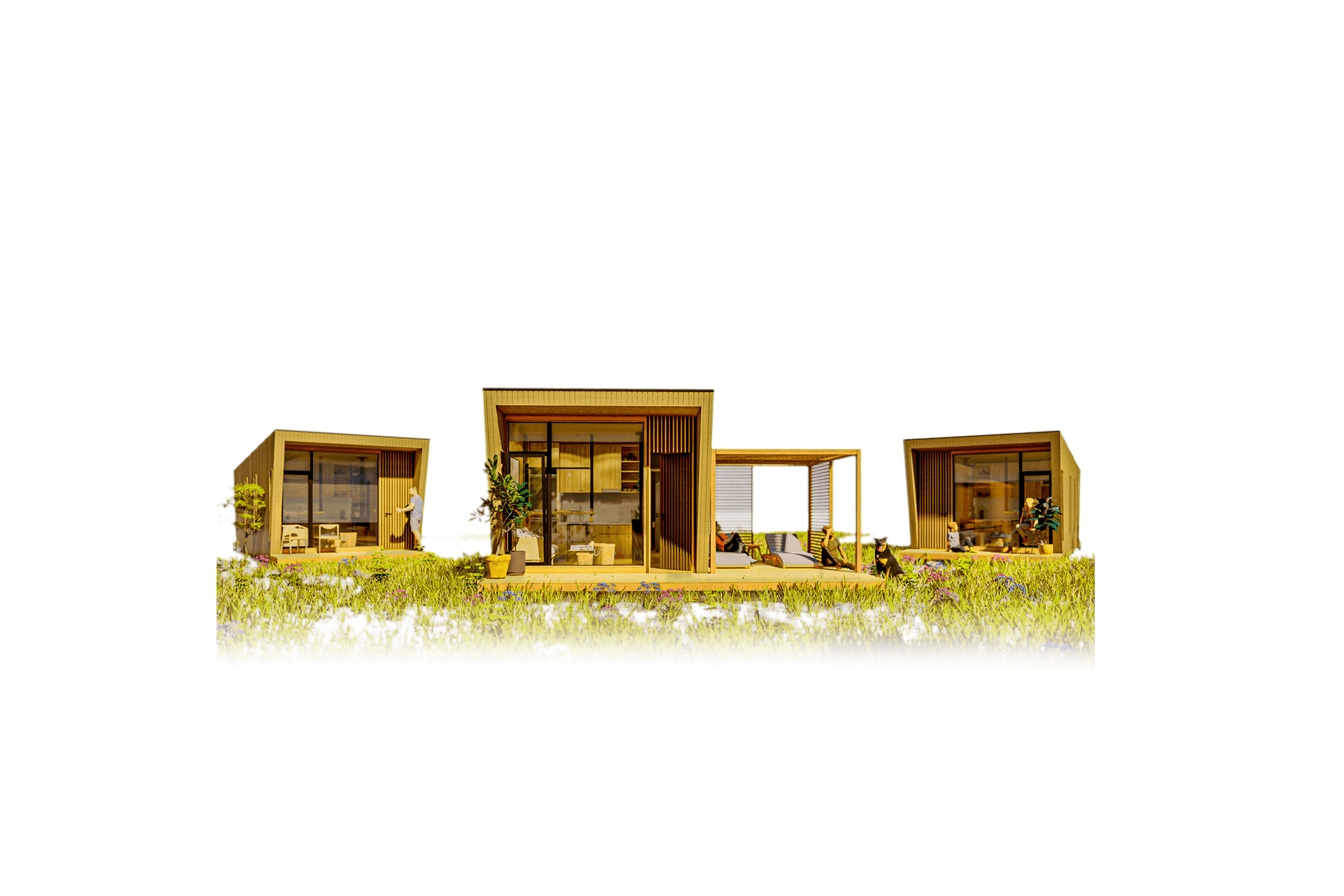 Variante del modelo Mox-32 que incorpora un segundo dormitorio mediante un módulo adicional. Permite sumar un nuevo ambiente para adaptarse a nuevas necesidades, manteniendo intactas las dimensiones del living, la cocina y el baño. Con esta ampliación, la vivienda alcanza una superficie total de 48 m².